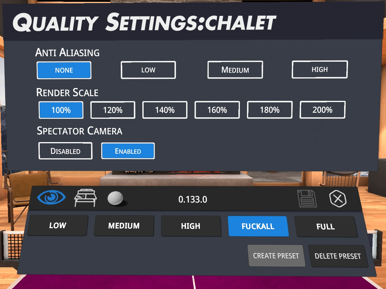 Graphics quality settings and spectator view