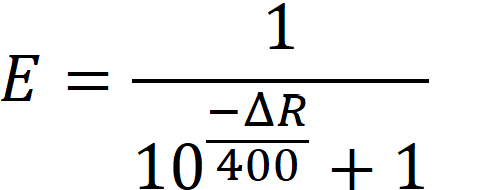 indicates what proportion of games you are expected to win, where ΔR = your initial rating - their initial rating. For example, if your rating is 300 and your opponent is rated 150, you are expected to win 0.703, or 70.3% of your games. Expectation factors for opposing players will always sum to 1.