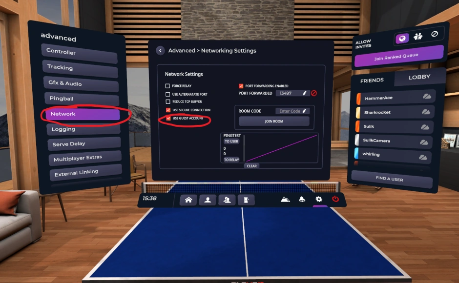 To login as a guest account, follow the circled options in game: